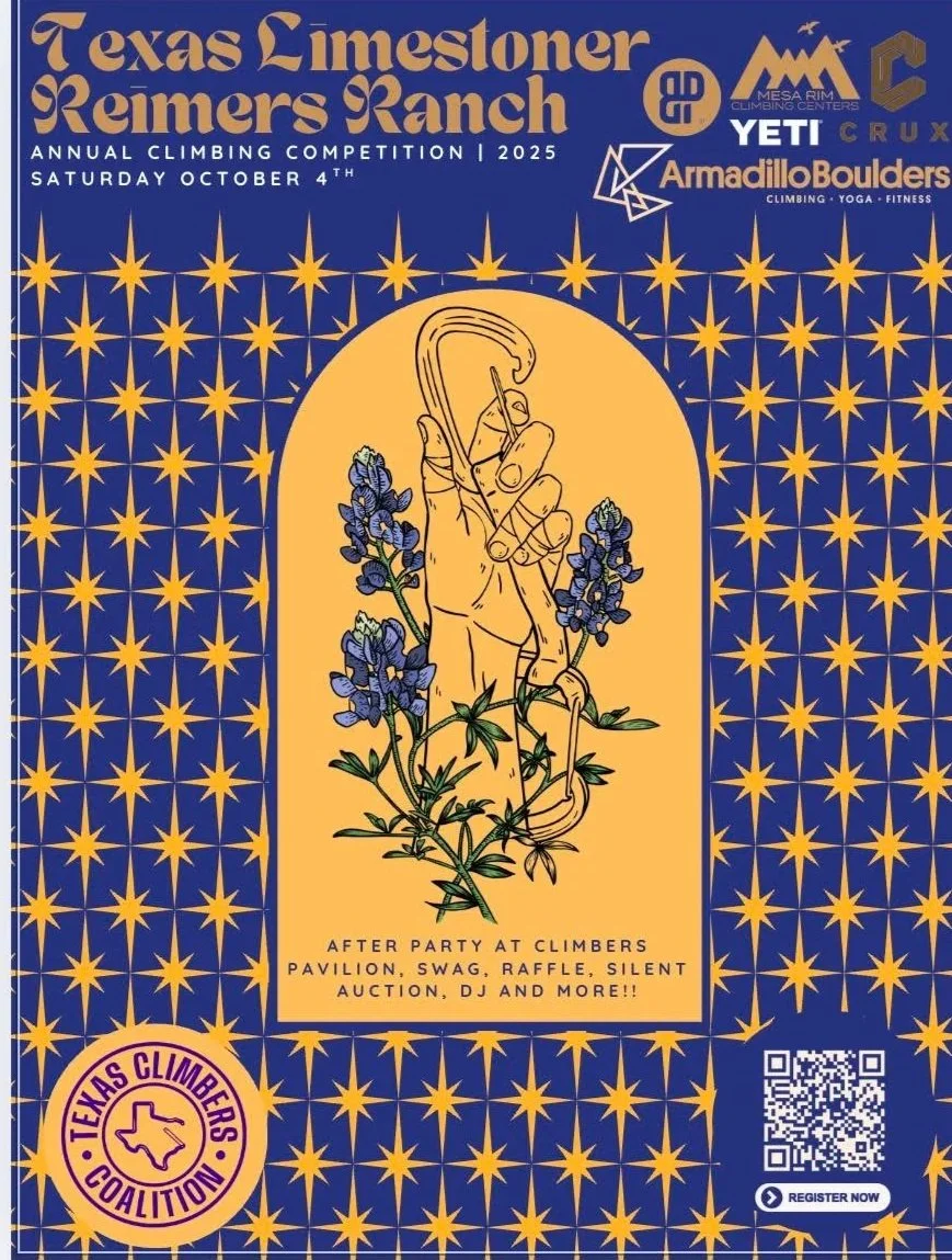 It’s official! Limestoner 2025 is returning to Reimer’s Ranch on October 4th, so get ready for send temps! Expect a full day of climbing, music, and community centered at the main climbers’ pavilion. Registration is now open. Whether you’re here to compete or just to support, there’s a ticket option for you. Both Competitor and Advocate tickets are live, so don’t wait to snag your spot!